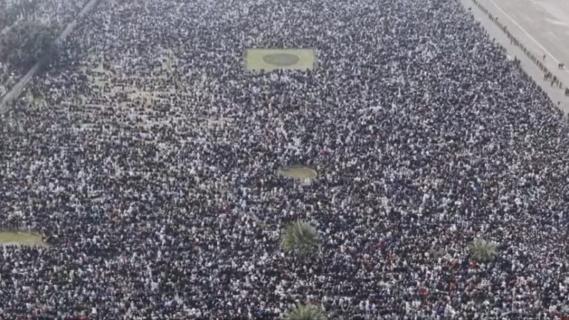 Since early morning, thousands of mourners have gathered at Manik Mia Avenue to pay their final tributes to the late leader.