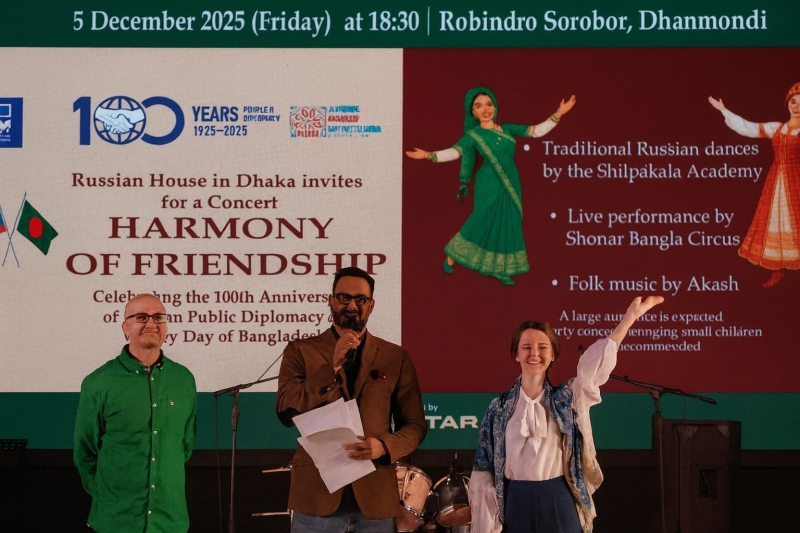 The Russian House in Dhaka hosted a large-scale festive concert on Friday to celebrate the 100th anniversary of Russian People’s Diplomacy as well as Bangladesh Victory Day. The open-air event at Rabindra Sarobar drew a crowd of more than 13,000 attendees.