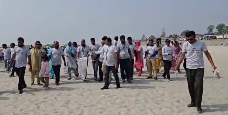 Patuakhali: To combat the adverse effects of climate change and protect the coastal environment, the non-governmental voluntary organization NSS has conducted a human chain and beach cleaning campaign in Kuakata, Patuakhali. Various development organizations, social organizations and local people participated in the program.