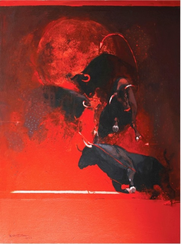 One showed rockets being fired at an island, while another showed tanksemerging from the sea.